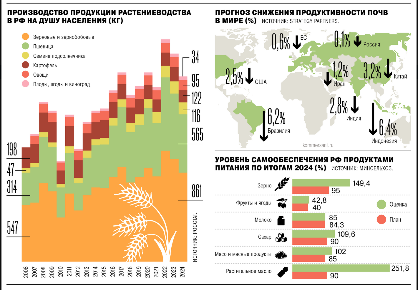 На рынке растениеводства — оптимизация: виден четкий переток ресурсов из низкорентабельных, рискованных и климатически уязвимых культур в пользу высокодоходных и экспортно ориентированных, констатирует госпожа Корягина. Андрей Суворов также говорит о том, что «портфель культур» меняется вслед за коррекцией экономики сбыта и климатом.